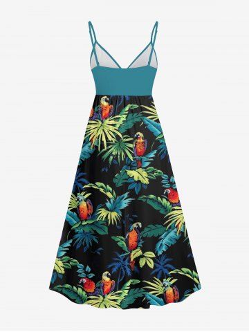 Graphic Dresses > Plus Size Ombre Tropical Leaf Parrot Print Hawaii Surplice A Line Cami Dress