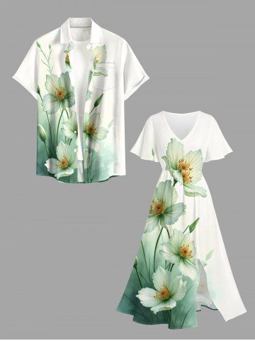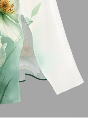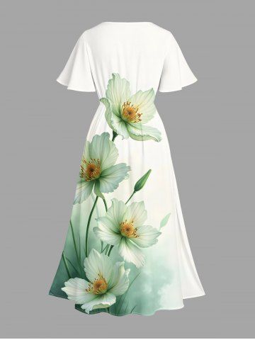 Plus Size Ombre Watercolor Flower Print Hawaii Split Pocket A Line Midi Dress - Green - 5x