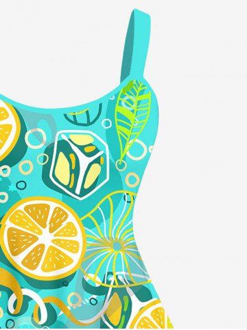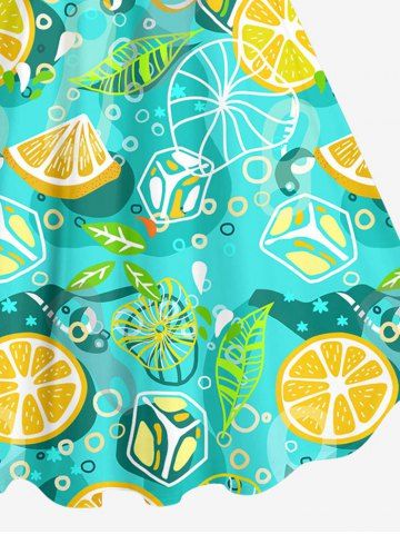 Plus Size Orange Ice Cubes Mint Leaf Print Hawaii Tank Dress - Light Green - 6x