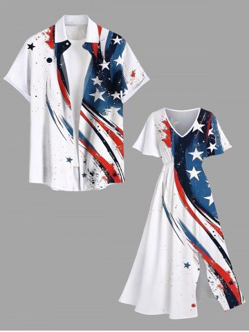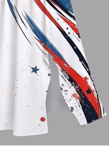 Plus Size Painting Splatter Patriotic American Flag Curve Print Split Pocket A Line Midi Dress - White - Xs