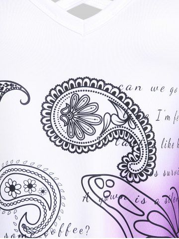 Plus Size Paisley Butterfly Letters Printed Crisscross Graphic Sleeveless Dress - White - 5x | Us 30-32