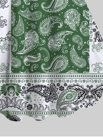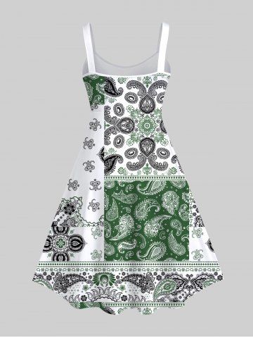 Hawaii Plus Size Paisley Floral Geometric Plaid Print Backless A Line Tank Dress - White - 2x