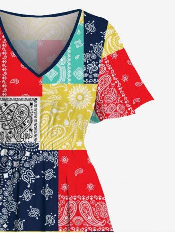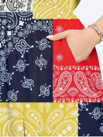 Plus Size Paisley Floral Scarf Print Split Hawaii Midi Dress - Multi-a - Xs