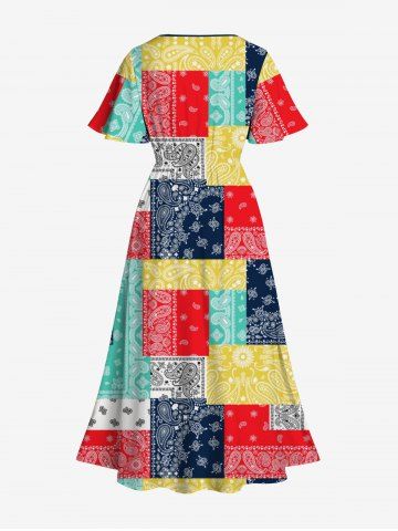 Plus Size Paisley Floral Scarf Print Split Hawaii Midi Dress - Multi-a - 1x