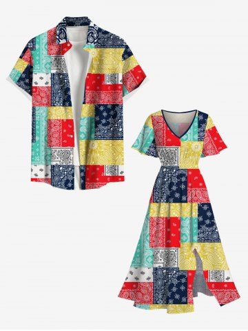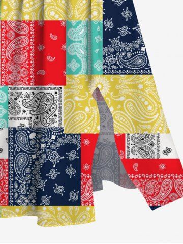 Plus Size Paisley Floral Scarf Print Split Hawaii Midi Dress - Multi-a - 4x