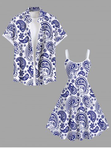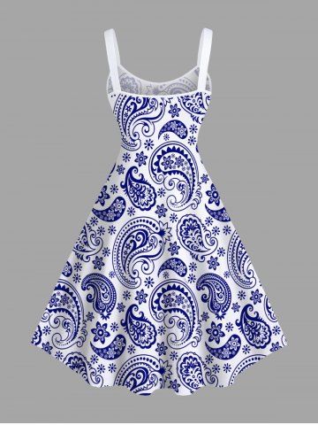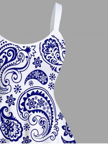 Plus Size Paisley Floral Two Tone Print Hawaii A Line Tank Dress - Blue - 1x