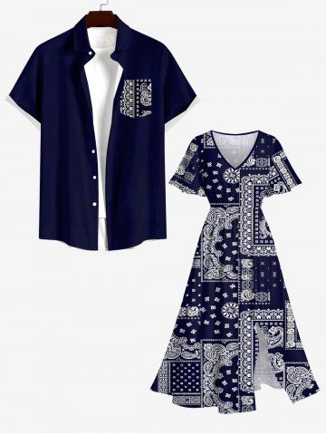 Plus Size Paisley Scarf Graphic Print Split Pocket A Line Dress - Black - 5x