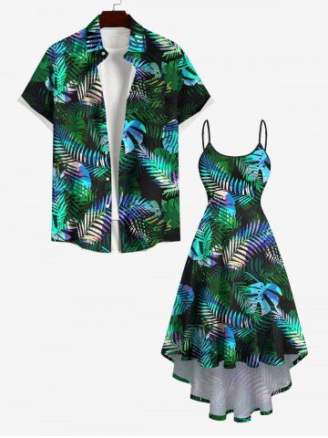 Plus Size Palm Leaf Print Hawaii High Low Cami Dress - Black - Xs
