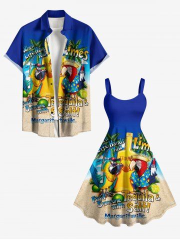 Plus Size Parrot Bottle Coconut Tree Lemon Print Hawaii Tank Dress - Sky Blue - 6x
