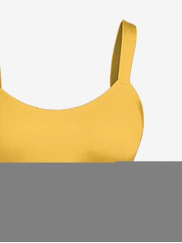 Plus Size Parrot Coconut Tree Flower Sun Seascape Print Hawaii Tank Dress - Golden Brown - Xxs