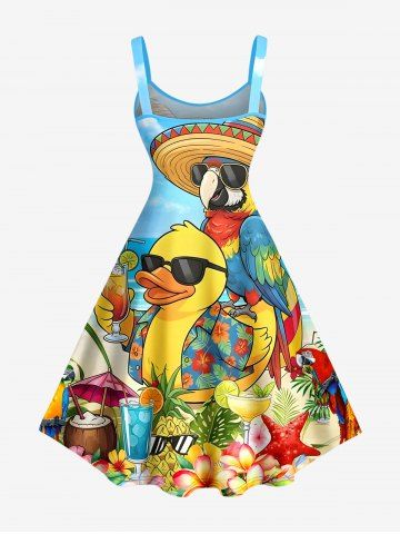 Graphic Dresses > Plus Size Parrot Duck Pineapple Fruit Juice Flowers Print Hawaii Tank Dress