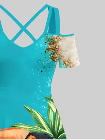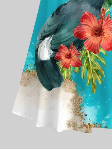 Graphic Dresses > Plus Size Parrot Floral Tropical Leaf Sea Beach Print Hawaii Crisscross A Line Maxi Dress