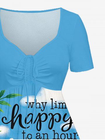 Plus Size Parrot Fruit Juice Hibiscus Flower Seascape Print Cinched Hawaii Dress - Sky Blue - 3x