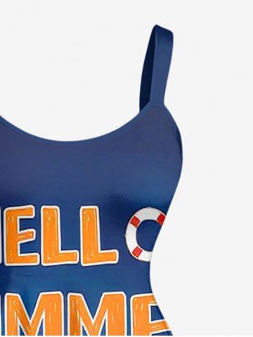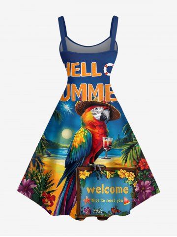 Plus Size Parrot Seascape Print Hawaii A Line Dress - Deep Blue - 1x