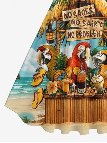Plus Size Parrots Flowers Pineapple Fruit Juice Seascape Print 1950s Vintage Hawaii Dress - Light Brown - 4x