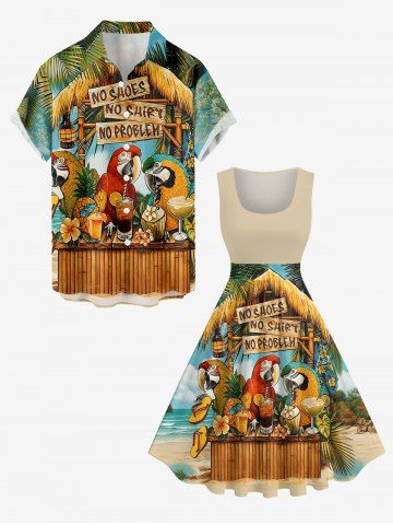 Graphic Dresses > Plus Size Parrots Flowers Pineapple Fruit Juice Seascape Print 1950s Vintage Hawaii Dress