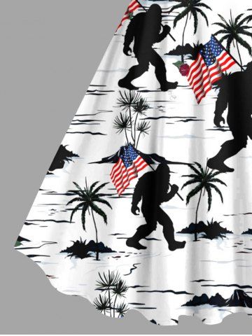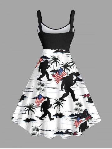 Plus Size Patriotic American Flag Coconut Tree Gorillas Print Tank Dress - White - 2x