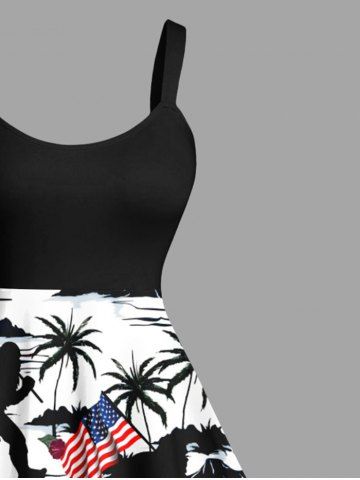 Plus Size Patriotic American Flag Coconut Tree Gorillas Print Tank Dress - White - 3x