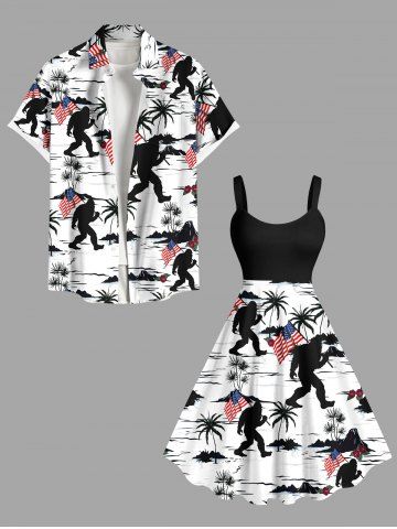 Plus Size Patriotic American Flag Coconut Tree Gorillas Print Tank Dress - White - 6x
