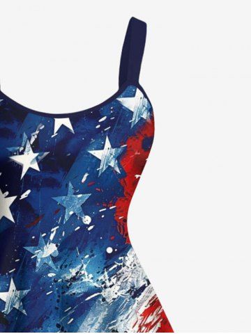 Plus Size Patriotic American Flag Coconut Tree Paint Splatter Print Hawaii Tank Dress - Blue - 1x