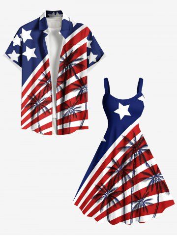 Graphic Dresses > Plus Size Patriotic American Flag Coconut Tree Print Hawaii Tank Dress
