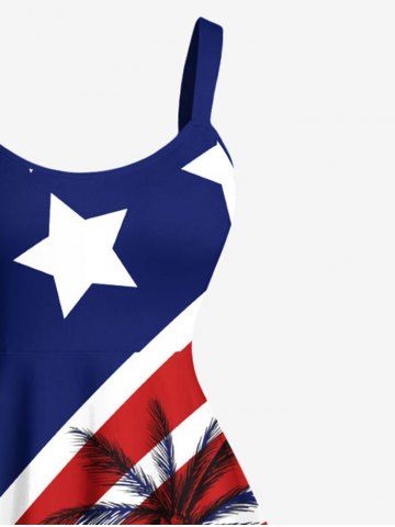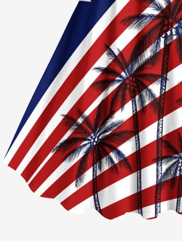 Plus Size Patriotic American Flag Coconut Tree Print Hawaii Tank Dress - Red - 5x