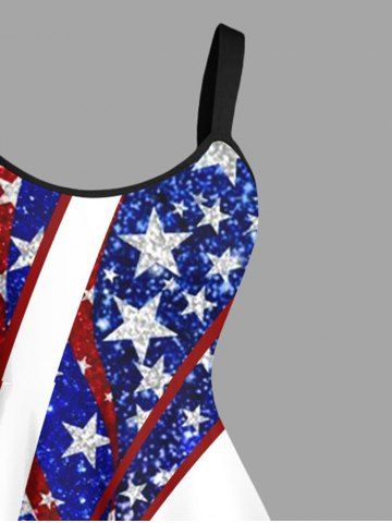 Plus Size Patriotic American Flag Coconut Tree Print Hawaii Tank Dress - Blue - S