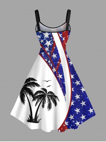 Graphic Dresses > Plus Size Patriotic American Flag Coconut Tree Print Hawaii Tank Dress