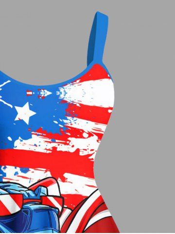 Plus Size Patriotic American Flag Dinosaur Print Tank Dress - Blue - Xs