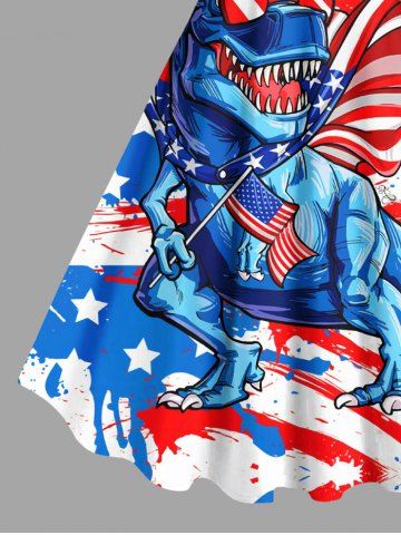 Graphic Dresses > Plus Size Patriotic American Flag Dinosaur Print Tank Dress