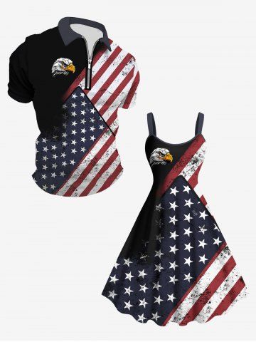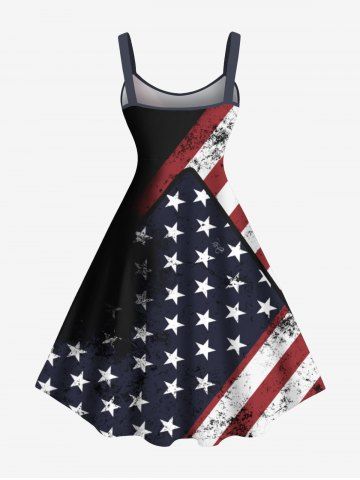 Plus Size Patriotic American Flag Eagle Print Tank Dress - Black - Xs