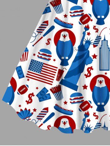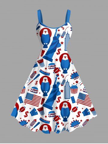Graphic Dresses > Plus Size Patriotic American Flag Eagle Statue of Liberty Print Tank Dress