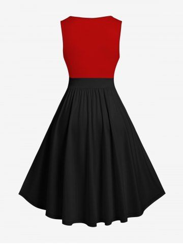Plus Size Patriotic American Flag Letters Print 1950s Vintage Dress - Black - M