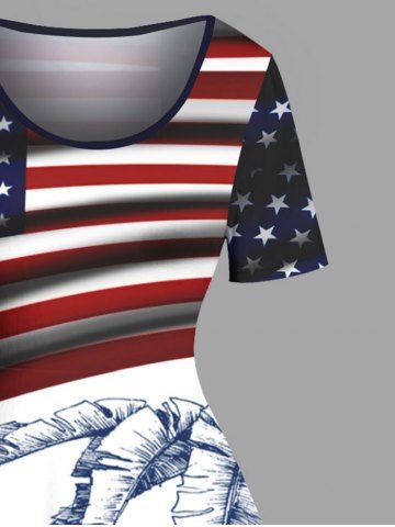 Plus Size Patriotic American Flag Tropical Leaf Coconut Tree Print Hawaii Vintage Dress - White - 2x