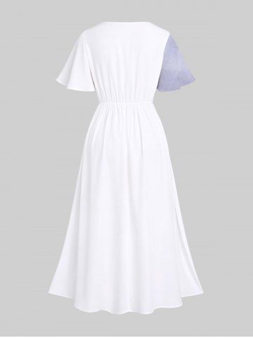 Plus Size Peach Blossom Flower Branch Ombre Colorblock Print Split Hawaii Midi Dress - Purple - M