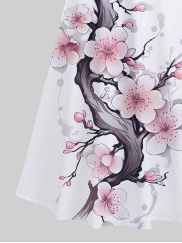 Plus Size Peach Blossom Flower Print Cold Shoulder Crisscross Hawaii Maxi Dress - White - S