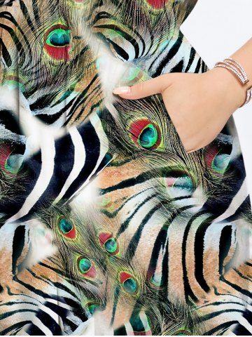 Graphic Dresses > Hawaii Plus Size Peacock Feather Tiger Zebra Striped Print Split Pocket A Line Dress