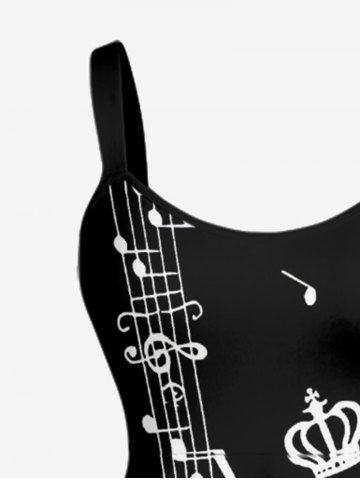 Plus Size Piano Music Symbol Print Hawaii A Line Dress - Black - Xxs