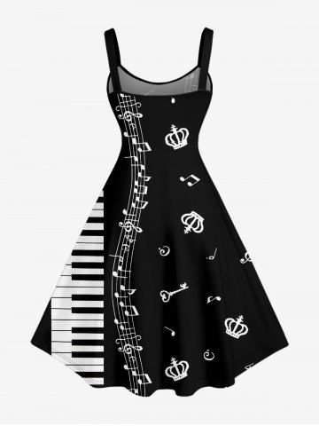 Plus Size Piano Music Symbol Print Hawaii A Line Dress - Black - M