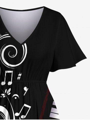 Plus Size Piano Music Symbol Print Hawaii Split A Line Skirt - Black - 3x