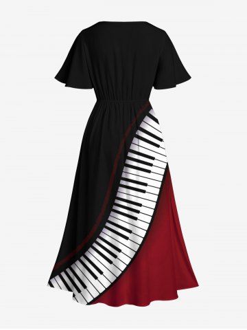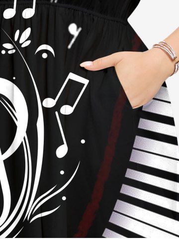 Plus Size Piano Music Symbol Print Hawaii Split A Line Skirt - Black - 5x