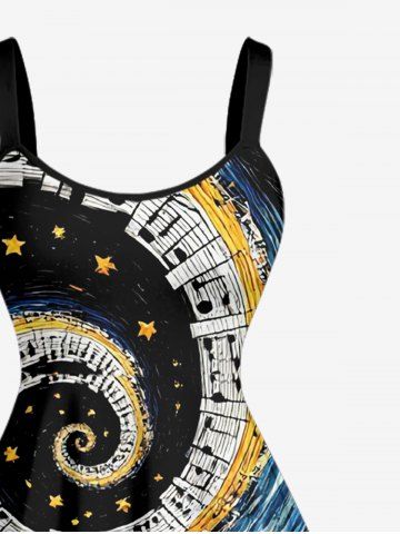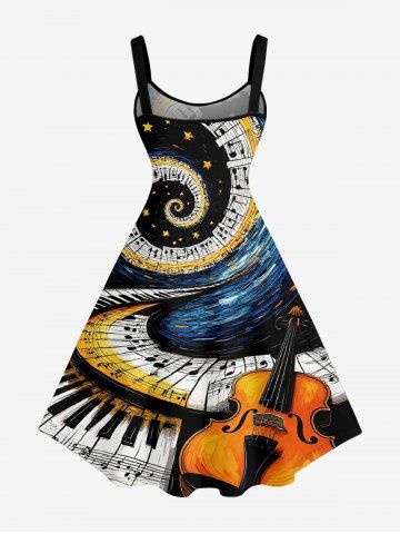 Plus Size Piano Music Symbol Spiral Galaxy Guitar Print Hawaii A Line Dress - Black - 5x