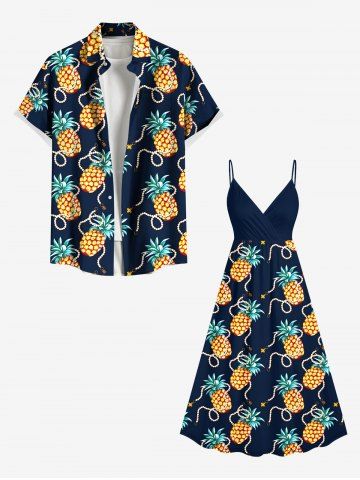 Graphic Dresses > Plus Size Pineapple Beading Print Hawaii Surplice A Line Cami Dress