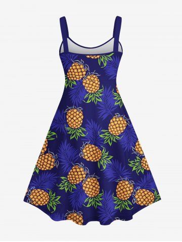 Plus Size Pineapple Coconut Leaves Print Hawaii Backless A Line Tank Dress - Blue - M