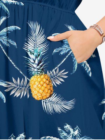 Plus Size Pineapple Coconut Tree Print Split Hawaii Midi Dress - Deep Blue - S