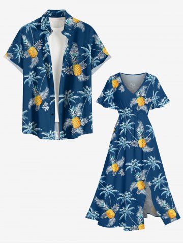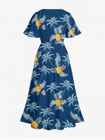 Plus Size Pineapple Coconut Tree Print Split Hawaii Midi Dress - Deep Blue - 5x