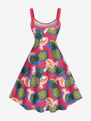 Graphic Dresses > Plus Size Pineapple Flamingo Print Hawaii A Line Tank Dress