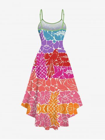 Plus Size Pineapple Floral Coconut Leaves Bird Colorblock Print Hawaii High Low Asymmetric A Line Cami Dress - Multi-a - L