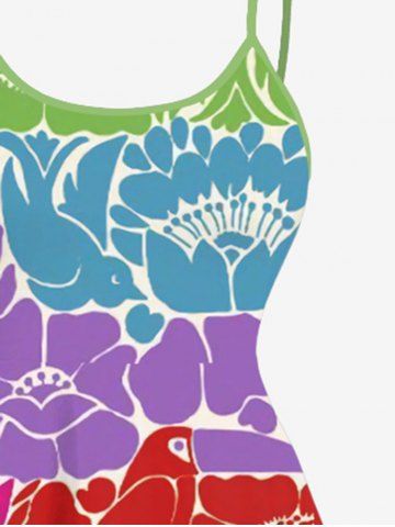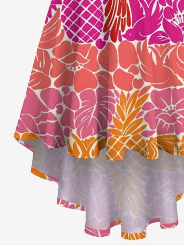 Plus Size Pineapple Floral Coconut Leaves Bird Colorblock Print Hawaii High Low Asymmetric A Line Cami Dress - Multi-a - 4x