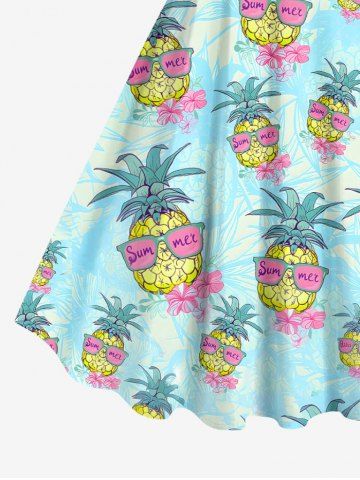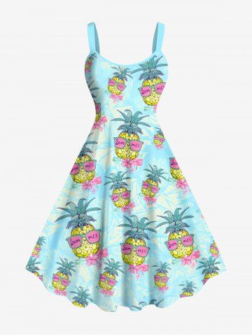 Plus Size Pineapple Floral Sunglasses Print Hawaii A Line Tank Dress - Light Blue - Xs
